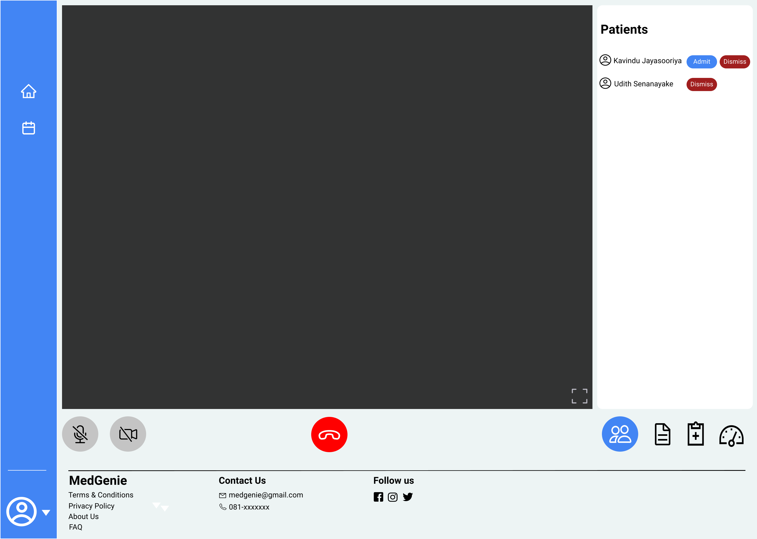 This is how a video conference looks like in the doctor’s perspective. The doctor can see the list of the patients in the queue and the doctor can only admit the next person in the queue. If that patient doesnt seem to respond, the doctor can discard the patient putting the patient at the bottom of the queue.