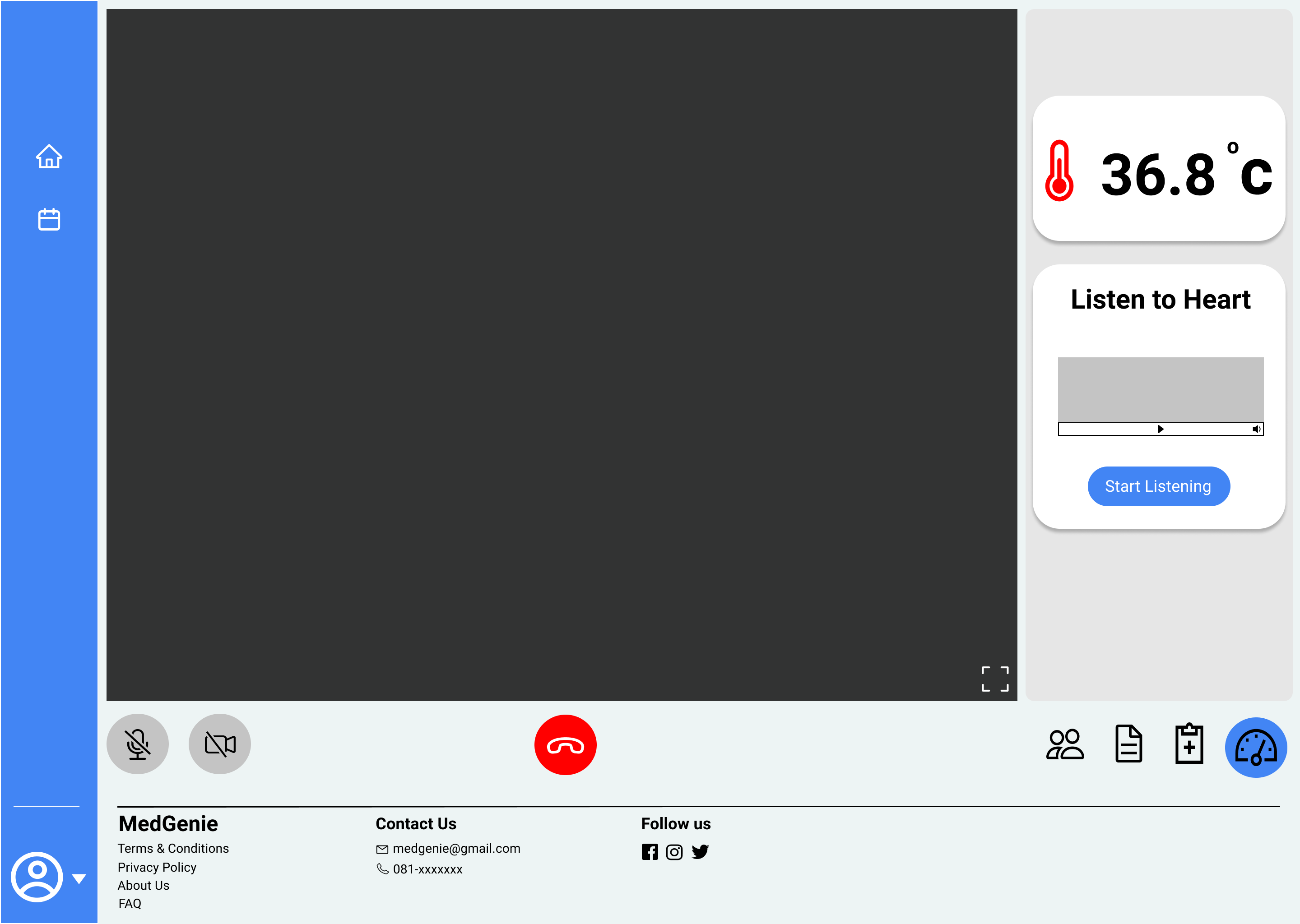 A doctor can access the medical device of the patient from here. The body temperature is displayed at the top and the doctor can start listening to the heart sounds by clicking on the ‘Start Listening’ button. The doctor also has the option to replay and listen to the obtained audio data.