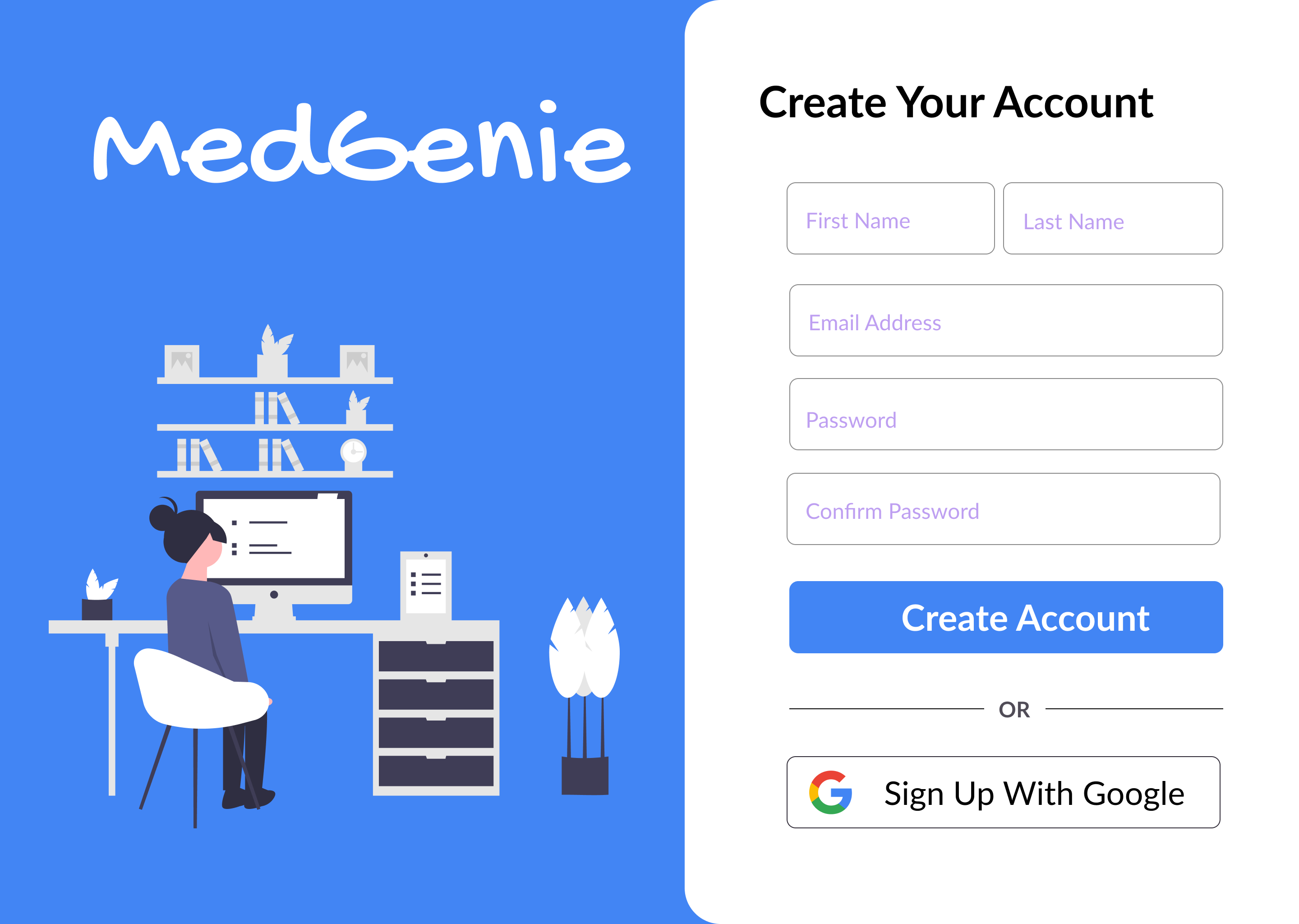 A patient can create an account here by filling out the form or can directly sign up using a Google Account.