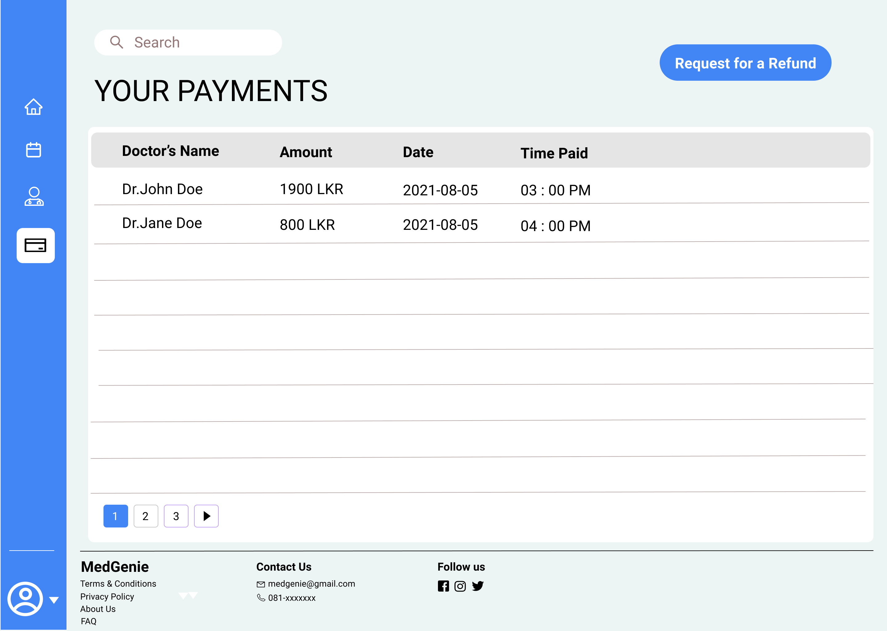 A patient can see all the payments made in the ‘Payments’ page. A request for a refund can be done from here.